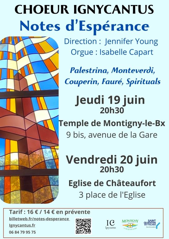 Le choeur IGNYCANTUS sera en concert sous la direction de Jennifer Young le jeudi 19 juin à 20H30 au Temple Protestant, 9bis avenue de la Gare,