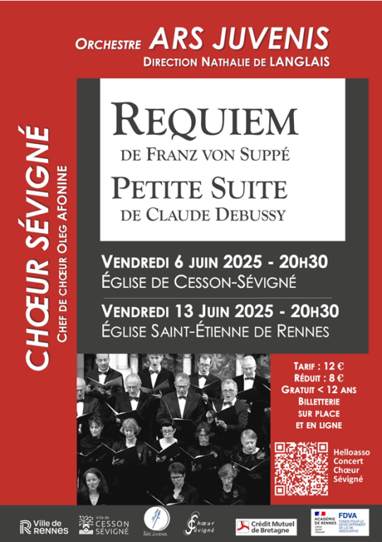 Par le Chœur Sévigné et l'orchestre Ars Juvenis, vendredi 12 juin à 20h30 en l'église St Étienne de Rennes.