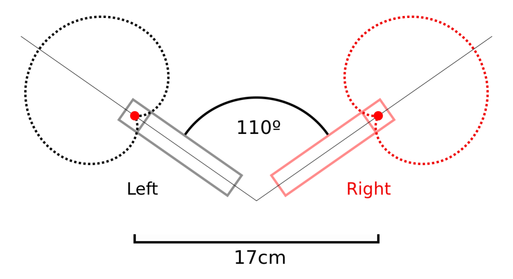 - le couple ORTF : les micros forment un angle d’environ 110° (l’idée est d’imiter l’amplitude d’écoute de l’oreille humaine).
