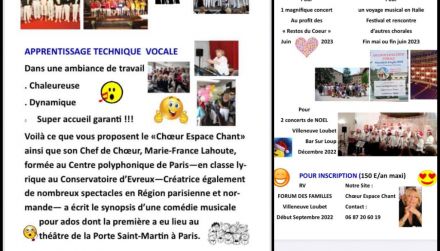Conditions d'admission : Aucune, dans la limite des besoins du moment selon les pupitres, du programme en cours et après accord de notre chef de chœur.