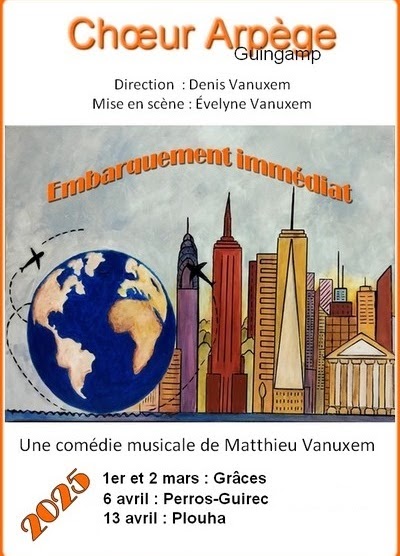 Prochains spectacles en les 1 et 2 mars, et Avril 2025 : Comédie musicale "Embarquement immédiat"