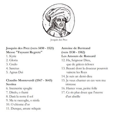 Du Moyen Age au XXème siècle : polyphonies sacrées et chansons a cappella.