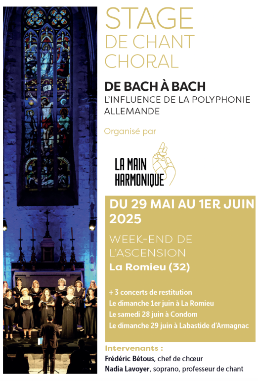 La Main Harmonique, qui a créé avec Nadia Lavoyer le festival Musique en Chemin, est spécialisé dans les polyphonies de la Renaissance et des créations contemporaines,.