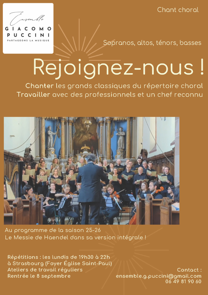 + d'infoRépétitions au foyer de l'église Saint-Paul - 1 place du Général Eisenhower 67000 STRASBOURG