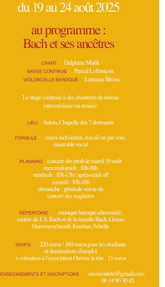 ensemble vocal baroqueFondé en janvier 2016 à Autun, l'ensemble vocal mixte A Grand Vent réunit une quinzaine de chanteurs venus de plusieurs sites du Morvan et interprète un répertoire baroque varié, avec une prédilection pour la narration (opéra avec mise en scène, oratorio avec mise en espace): Purcell, Monteverdi, Buxtehude, Schütz, Charpentier...