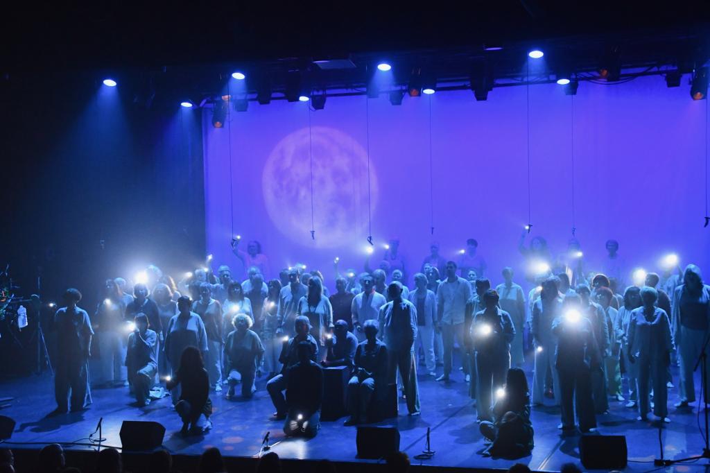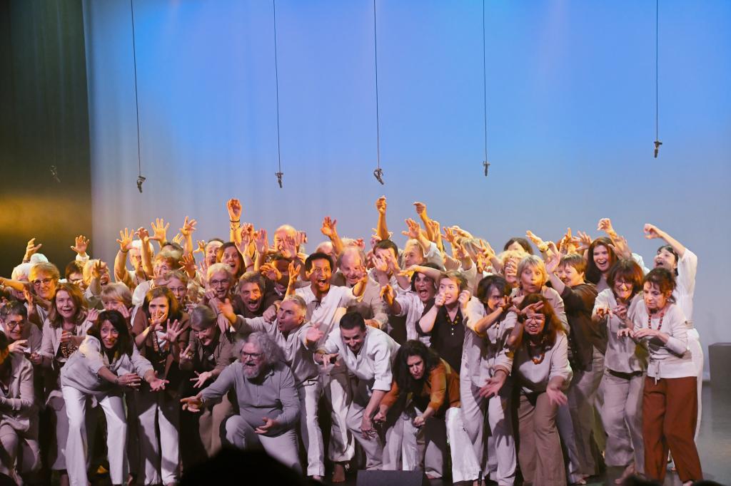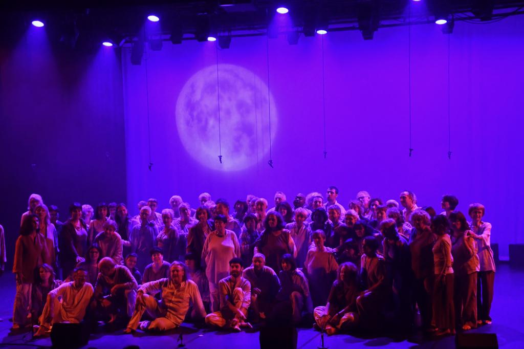 Notre création est l’aboutissement de deux années de travail : apprentissage vocal et corporel, mise en espace, construction de tableaux... jusqu'à se libérer totalement des partitions pour habiter pleinement le plateau.Alors, sur scène, l’histoire prend vie et le public vibre à l'unisson avec le chœur.