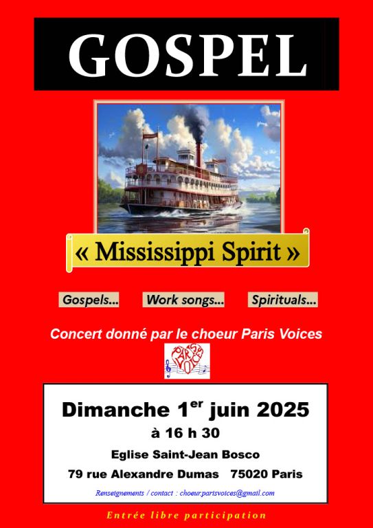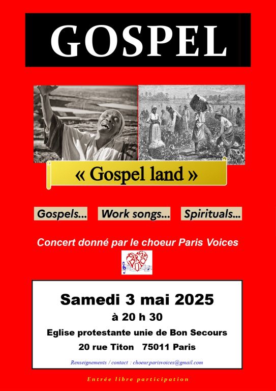 Choeur gospel amateur à ParisCréé en 2012, Paris Voices est un ensemble vocal amateur, qui dans la bonne humeur, travaille et se produit en concerts pour faire partager, toute la force, la joie et l'émotion d'une trentaine de "gospels, negro-spirituals, work songs et traditionals".