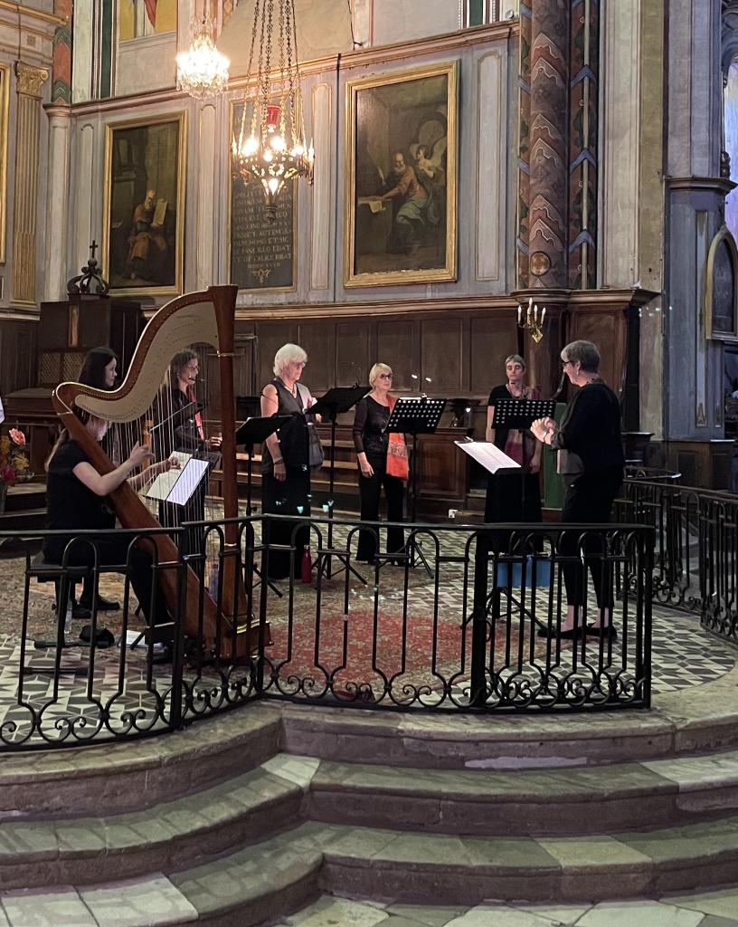 Musiciens : Des chanteuses chantant a cappella lors des répétitions et en concert soit a cappella soit accompagné par un ensemble instrumental professionnel, en fonction de la nature du projet. L'ensemble est régulièrement accompagné par Adélaïde LEGRAS, harpiste et Emmanuel JOUSSEMET violoncelliste.