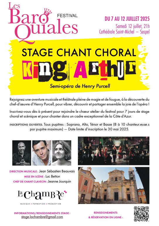Depuis 2018, La Chambre est partenaire actif du Festival des BaroQuiales de Sospel (Alpes-Maritimes). Un nouvel écrin propice à l'échange, à la transmission des savoirs, au développement d'activités musicales nouvelles et à l'exploration de nouveaux programmes. Ainsi la naissance des masterclass, Opera Atelier et concerts au sein du festival, et la création inédite de spectacles originaux et sur mesure dans le cadre baroque du village.