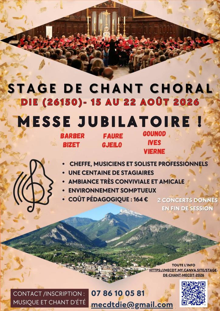 Organisation d'un stage annuel de chant choral à la fois convivial et exigeant à Die la 3ème semaine d'août.Depuis 1993, Musique et Chant d'Eté promeut le chant choral via l'organisation d'un stage de chant choral en été.